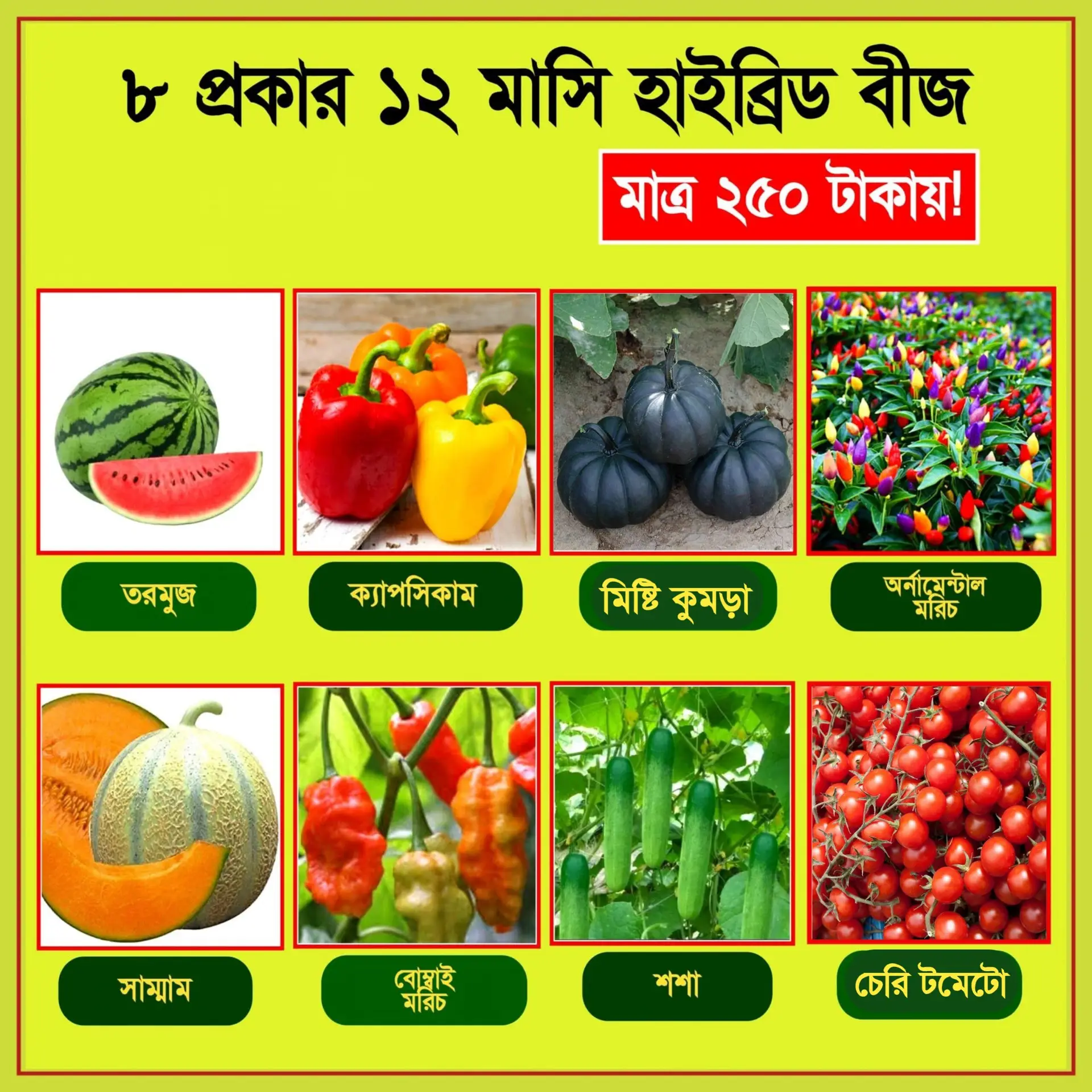 ৮ প্রকার বারোমাসি হাইব্রিড বীজের দারুন কম্বো প্যাকেজ/All year 8 types of hybrid seed